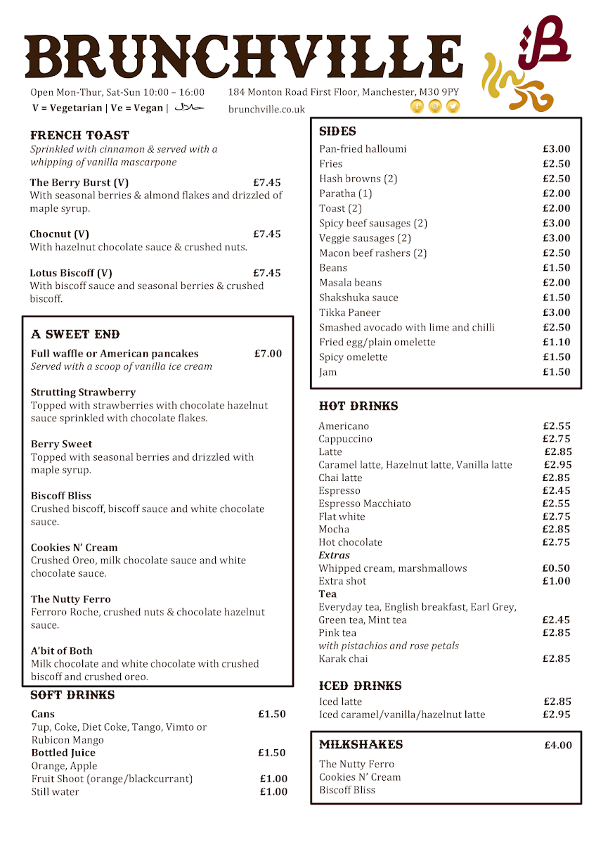 Tucked away on the charming Monton Road, Brunchville is a delightful escape for breakfast and lunch lovers seeking both comfort and culinary flair. The Brunchville Menu stands out as a thoughtfully curated selection that caters to modern tastes while honoring classic brunch staples. From hearty full English breakfasts to fluffy American-style pancakes and plant-based power bowls, the menu strikes a perfect balance between indulgence and health-conscious choices.