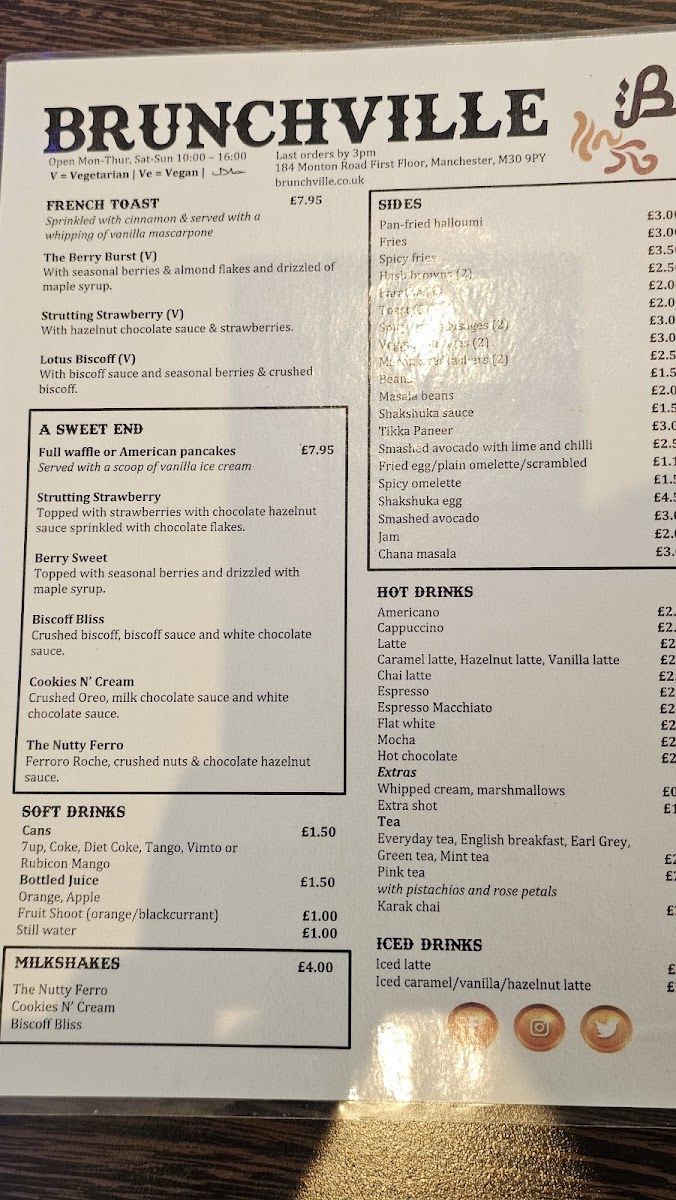 In short, the Brunchville Menu is a winning combination of creativity, comfort, and quality. It’s a must-try destination for anyone exploring the brunch scene in Greater Manchester.